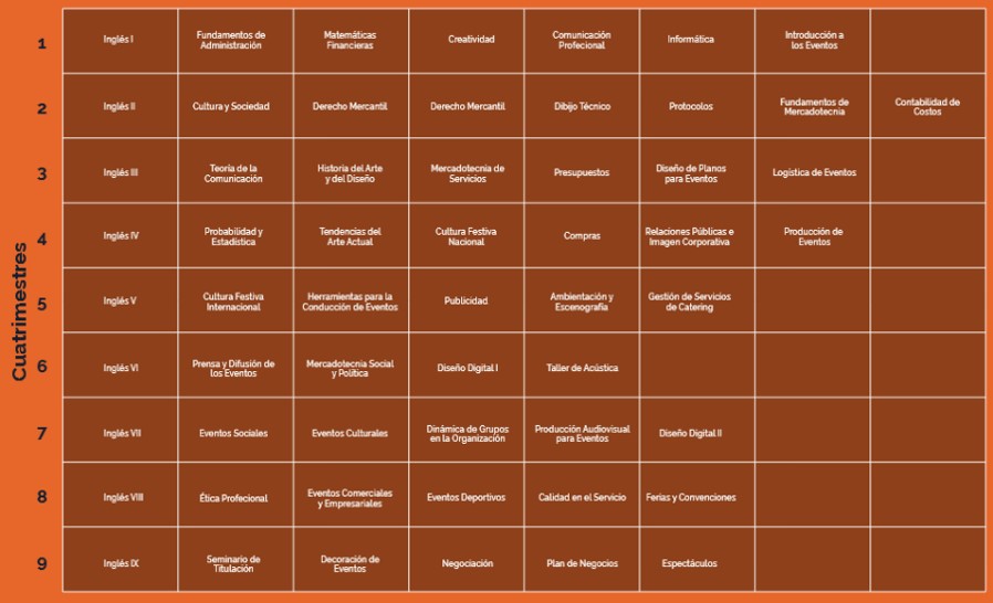 El egresado tendrá la capacidad para diseñar, gestar y producir, de acuerdo a su naturaleza y carácter, un evento.